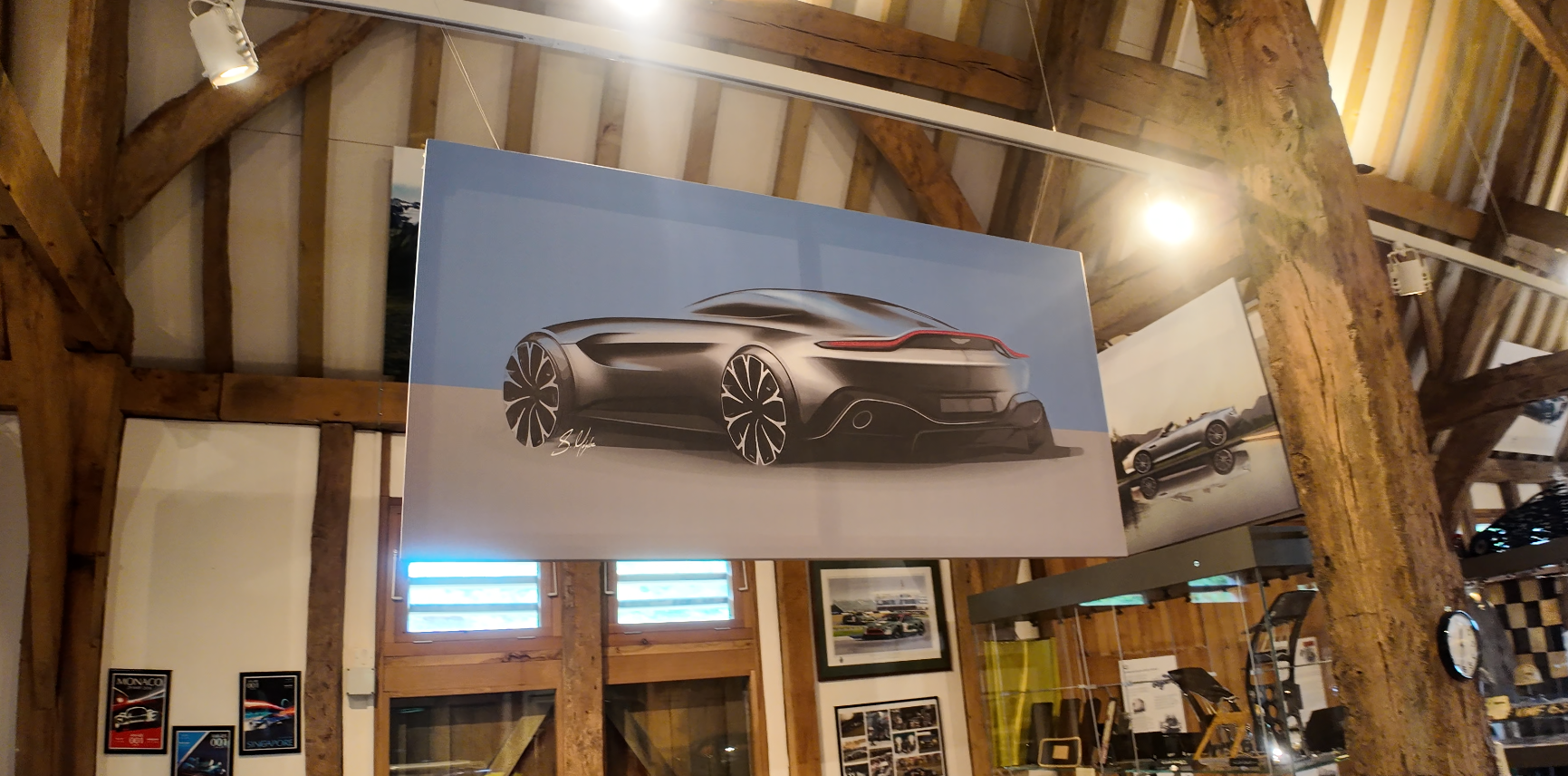 Image © Fuel the Passion, drawing created by young Aston Martin designer Sam Holgate, hanging in Aston Martin Heritage Museum, Oxfordshire