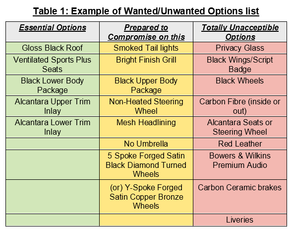 If you try this route, you may find it helpful to compile a table (similar to Table 1 above) to help you assess how far off the mark is the showroom model from what you want.