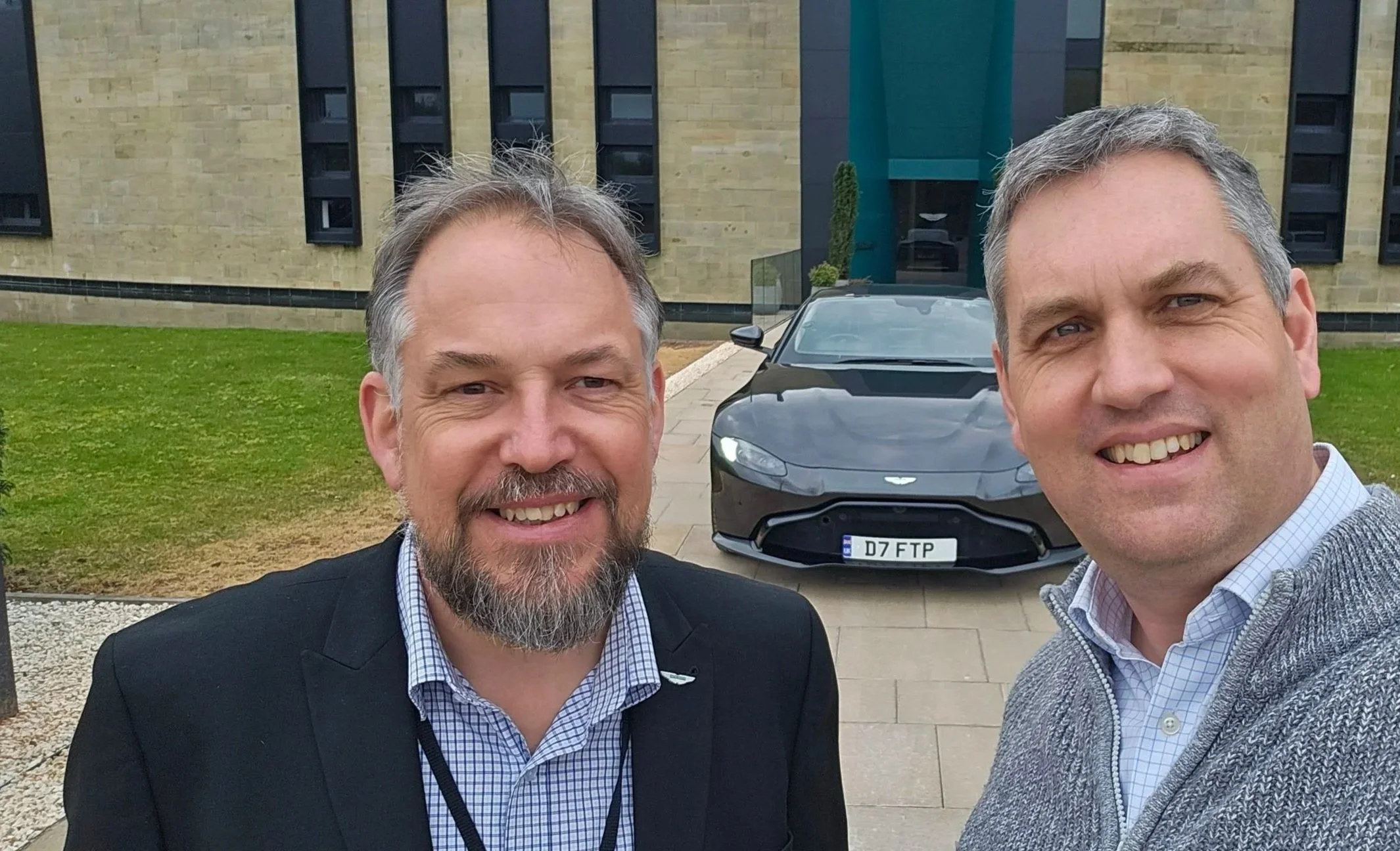 Image © Fuel the Passion, Dan from FTP and ‘Wadder’ outside AML HQ, Gaydon