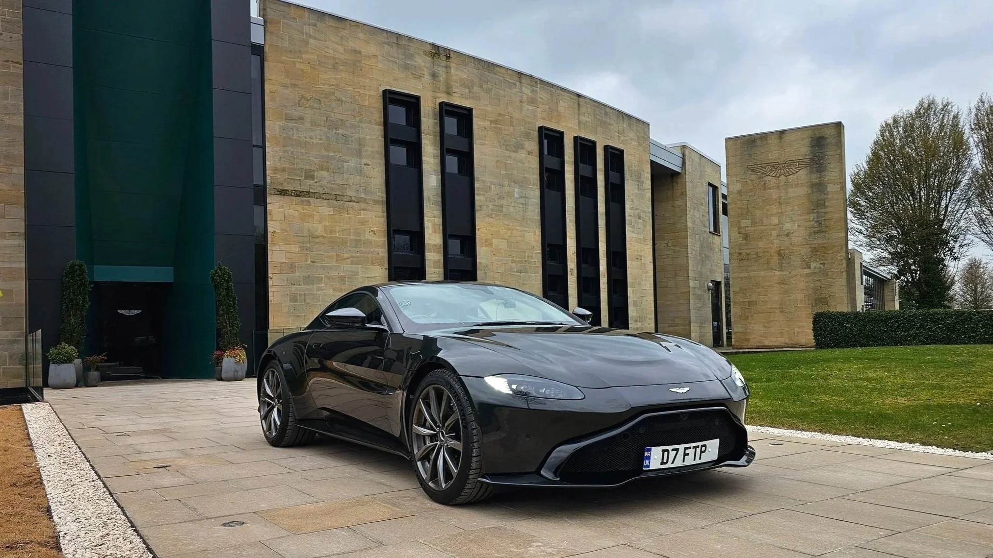 Image © Fuel the Passion, driving the FTP Vantage home, outside AML HQ, Gaydon, UK