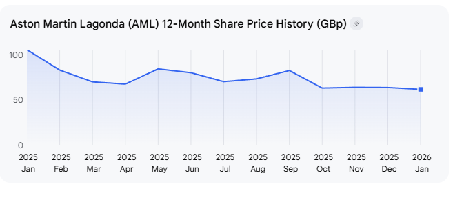 Placed in a broader historical context, the contrast is sobering. When Aston Martin arrived on the London Stock Exchange in October 2018, the business carried a valuation of around £4.33 billion. By late January 2026, market capitalisation has fallen to approximately £622.66 million. While headline comparisons are complicated by structural changes, the underlying reality is clear: equity value has been heavily eroded over time.