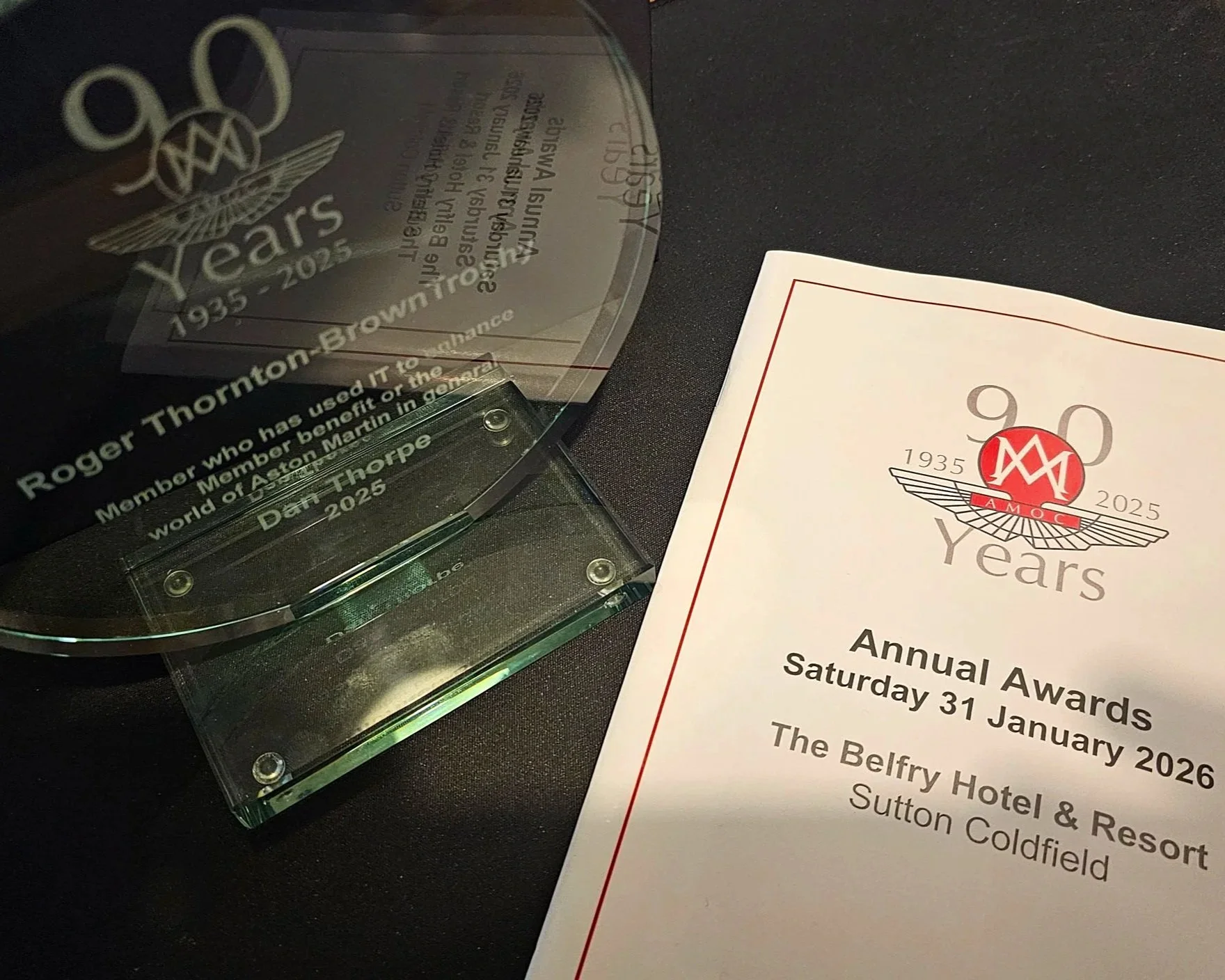 On Saturday 31 January, I attended the Aston Martin Owners Club (AMOC) Annual Awards Reception and Lunch at The Belfry Hotel & Resort, having been honoured with the Roger Thornton-Brown Trophy for using IT to enhance member benefit and the wider Aston Martin world.
